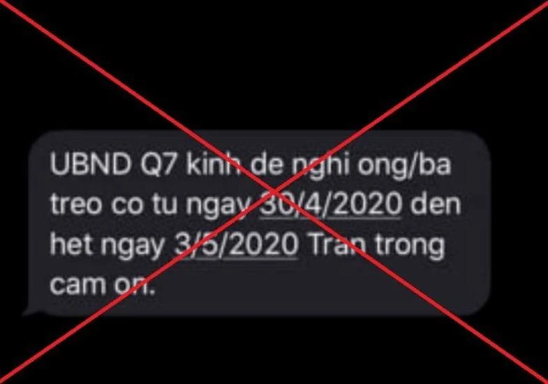 Trước đó, ngày 27-4-2020, trên mạng xã hội lan truyền hình ảnh đoạn tin nhắn (không có dấu) có nội dung "UBND Q 7 kinh de nghi ong/ba treo co tu ngay 30/4/2020 den het ngay 3/5/2020. Tran trong cam on".