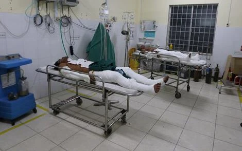 Những người bị bỏng do thách nhậu đang cấp cứu tại BV Đa khoa Khánh Hòa. Ảnh: CTV