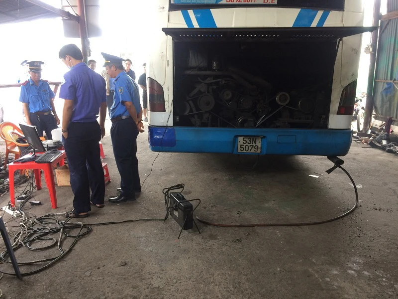 Tại đây, nhân viên thanh tra tiến hành gắn thiết bị đo khí thải 10 xe buýt, kết quả có tám xe đạt tiêu chuẩn khí thải, hai xe còn lại không đạt. Ngay sau đó, xe vi phạm bị xử phạt hành chính và yêu cầu khắc phục.