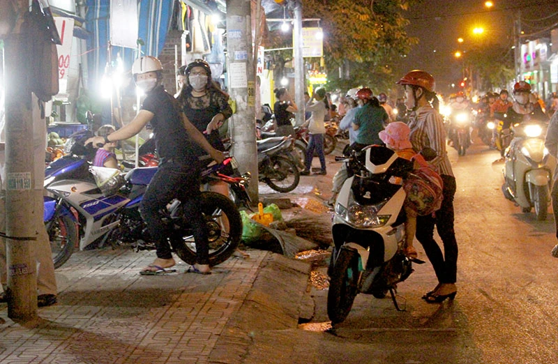 Phường cũng đề nghị người kinh doanh nhắc người mua phải đậu xe gọn trong lề đường, chừa lối cho người đi bộ. Ảnh: LÊ THOA