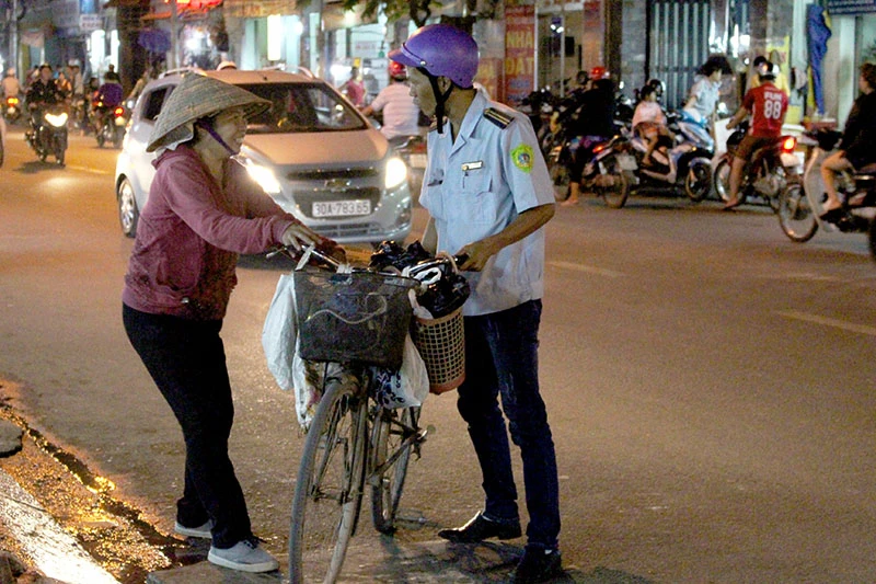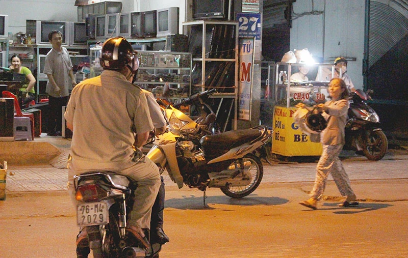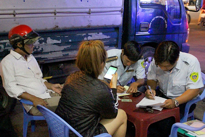 Tối 3-3, ông Trần Minh Tú – Chủ tịch và ông Trịnh Trọng Thành – Phó chủ tịch UBND Phường Hiệp Bình Chánh (quận Thủ Đức) đã cùng với lực lượng trật tự đô thị và công an phường đã tiếp tục ra quân xử phạt vi phạm trật tự lòng lề đường.