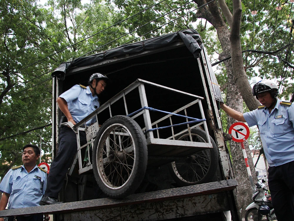 Chiều 15-8, ông Đoàn Ngọc Hải, Phó chủ tịch UBND quận 1 đã dẫn đầu đoàn liên ngành tiến hành xử lý tình trạng lấn chiếm vỉa hè, lập lại trật tự đô thị tại các tuyến đường như Nguyễn Thái Học, Nguyễn Đình Chiểu, Lý Tự Trọng, Tôn Đức Thắng, Lê Thánh Tôn...