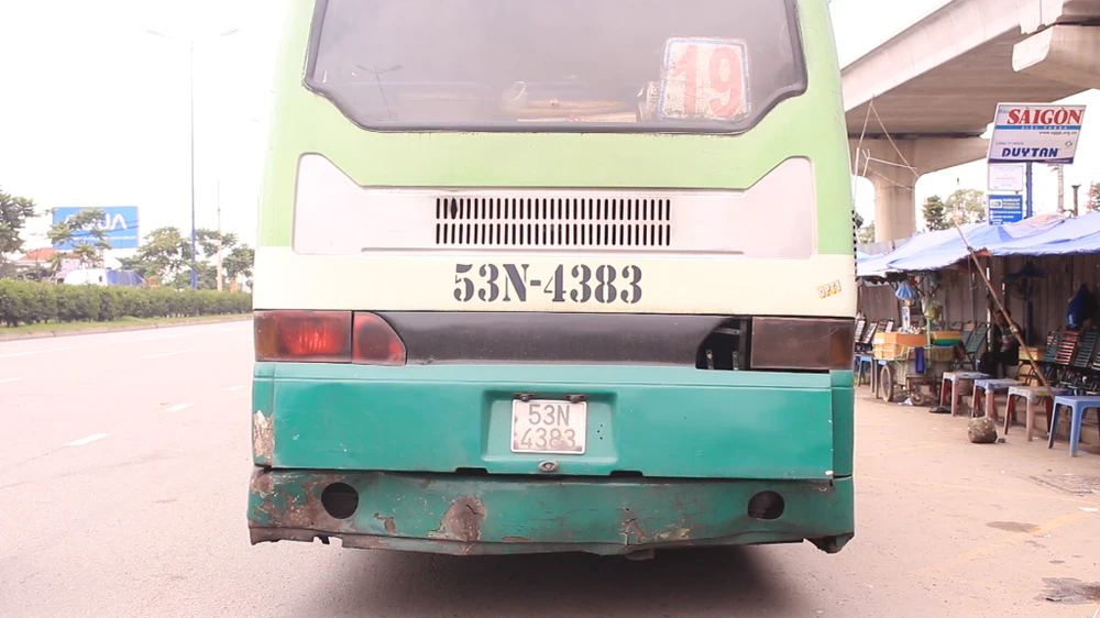 Đơn cử, nhiều xe buýt số 19 (tuyến Bến Thành - ĐH Quốc gia) có phần đèn sau vỡ nát hoặc không hoạt động, khi chạy thì xả khói đen ngòm, di chuyển nhếch nhác trên các tuyến đường trung tâm thành phố.