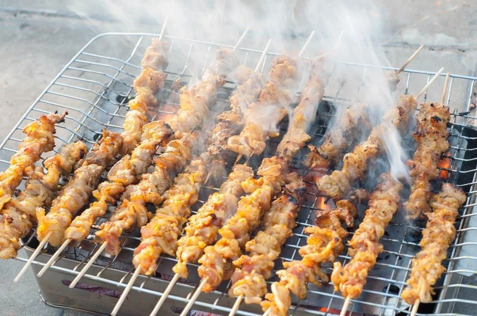 Thịt nướng được người bán nướng ngay trên vỉa hè. Ảnh: NC