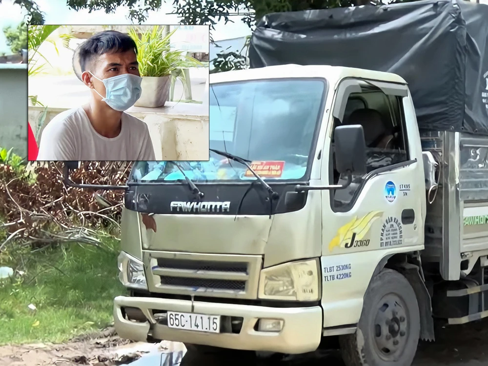 Xe tải có dán mã luồng xanh (ảnh lớn) và tài xế Đ. (ảnh nhỏ) Ảnh: DIỄM HẰNG