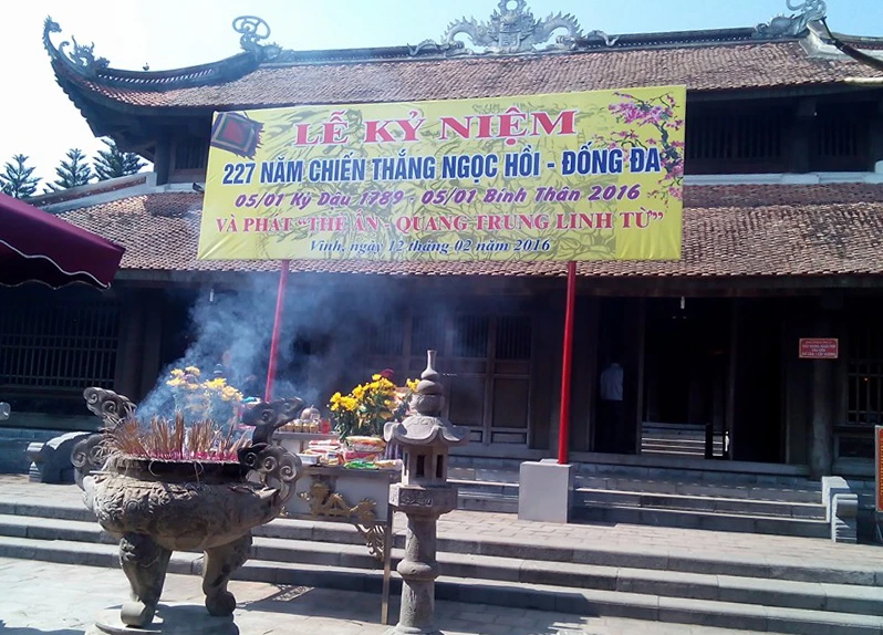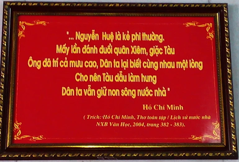 Năm câu thơ của Chủ tịch Hồ Chí Minh được trích, treo trang trọng tại đền thờ vua Quang Trung.