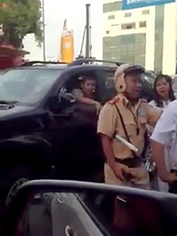 Lực lượng CSGT sau đó đã đến hiện trường giải quyết vụ việc. Ảnh cắt từ clip