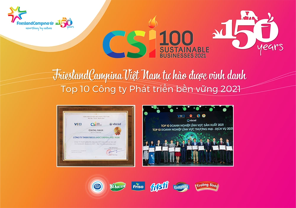 Năm 2021 cũng là năm có nhiều biến động với nền kinh tế thế giới và trong nước nhưng với kim chỉ nam phát triển bền vững, FrieslandCampina Việt Nam (FCV) - doanh nghiệp sở hữu các thương hiệu nổi tiếng như sữa Cô Gái Hà Lan, Friso, Yomost… đã vượt qua khó khăn và ghi dấu ấn với nhiều thành quả ấn tượng về kinh tế, môi trường và các hoạt động cộng đồng.