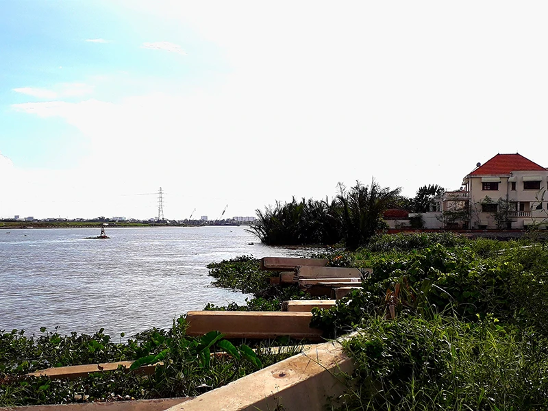 Tuy nhiên, không phải ai cũng có điều kiện để cải tạo cảnh quan ở mặt tiền sông Sài Gòn như chủ căn biệt thự trên. “Tôi mua căn nhà này thì hiện trạng đã như vậy rồi. Miếng đất giáp sông là hành lang an toàn, không được xây dựng nhưng cũng có thể cải tạo làm cảnh quan nếu điều kiện kinh tế cho phép vì với những chỗ dễ sạt lở thì làm rất tốn kém…” - chủ nhân căn nhà xây quay lưng ra sông phân trần.