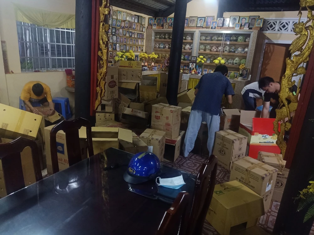 Mọi người tất bật đóng thùng bánh tét gửi cấp tốc ra miền Trung cho bà con bị lũ lụt. Ảnh: HD