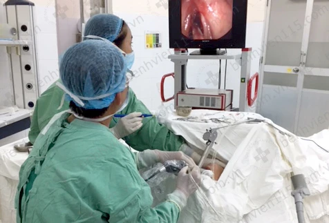 Các bác sĩ đang nội soi chẩn đoán vết thương. Ảnh: BV CUNG CẤP