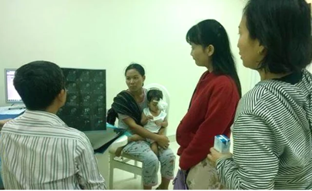 TS.BS Trần Chí Cường, Chủ Tịch Hội Can Thiệp Thần Kinh TP.HCM đang khám bệnh cho bé gái.