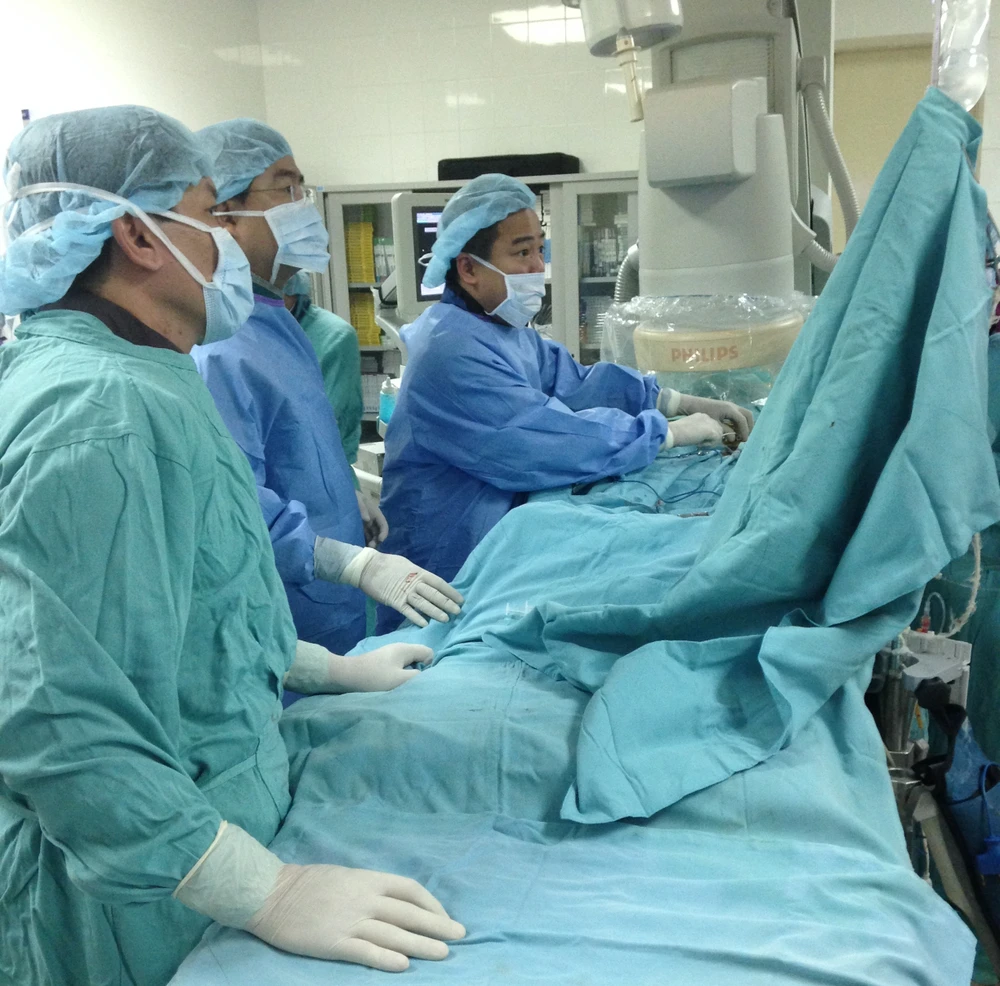 Với sự hỗ trợ của TS Nguyễn Lân Hiếu (Viện Tim mạch Việt Nam) và một chuyên gia của Singapore, Bệnh viện Trung ương Huế đã tiến hành thông động mạch đùi lên tim để đưa van thay vào mà không cần phẫu thuật mở lồng ngực.