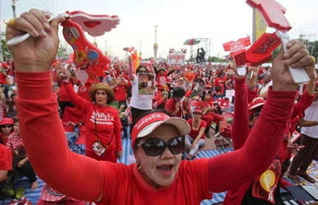 Phát biểu tại cuộc biểu tình, Chủ tịch Mặt trận Dân chủ thống nhất chống độc tài Jatuporn Prompan cáo buộc các cơ quan tư pháp quốc gia đang tìm cách giành quyền kiểm soát chính quyền mà không thông qua bầu cử. Ông cảnh báo người biểu tình áo đỏ sẽ không chấp nhận bất kỳ phán quyết nào phế truất bà Yingluck Shinawatra. Ông cho biết cuộc biểu tình sẽ huy động khoảng 500.000 người và kéo dài 2-3 ngày.