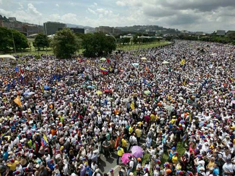 Riêng tại Caracas có hàng trăm ngàn người tập trung hô khẩu hiệu (ảnh) đòi Tổng thống Nicolas Maduro ra đi.