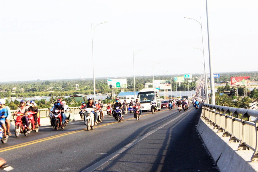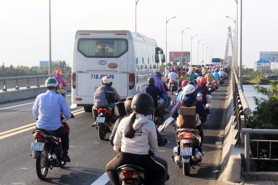Cầu Rạch Miễu hiện hữu luôn quá tải vào dịp lễ, tết. Ảnh: ĐH