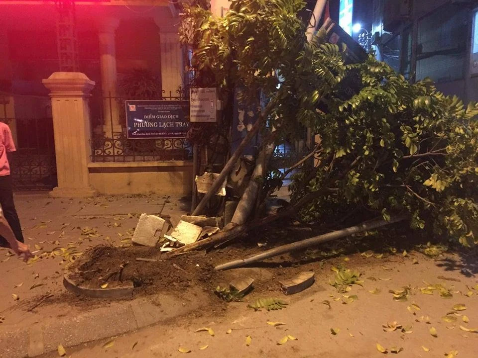 Chiếc xe chỉ dừng lại khi húc đổ cây sấu gần UBND phường Lạch Tray (quận Ngô Quyền, Hải Phòng).
