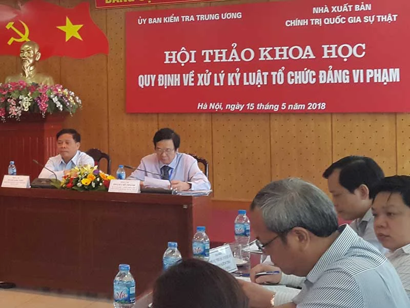 Quang cảnh hội thảo liên quan đến việc nghiên cứu sửa đổi, bổ sung quy định về xử lý kỷ luật tổ chức đảng vi phạm do Ủy ban kiểm tra Trung ương phối hợp với NXB Chính trị Quốc gia-Sự Thật tổ chức sáng 15-5. Ảnh: N.Nhân
