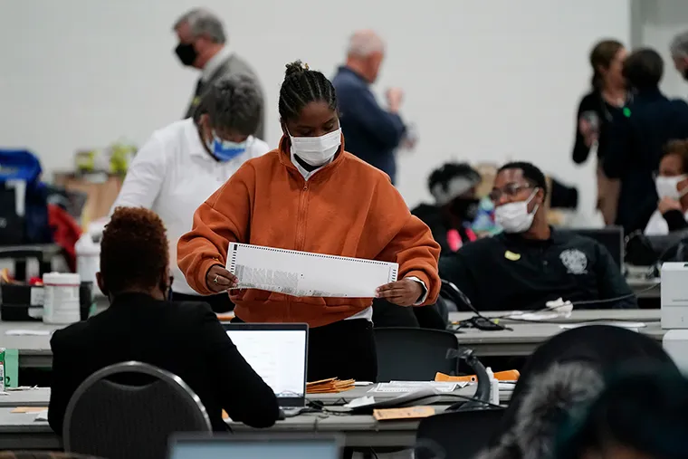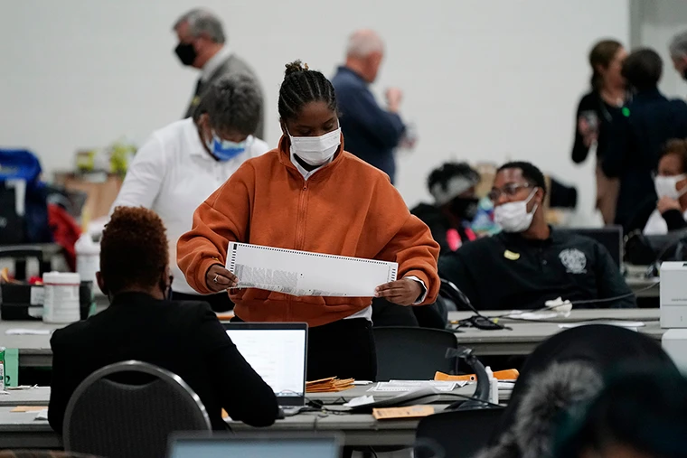 Nhân viên kiểm phiếu ở bang Pennsylvania đang làm việc rất căng thẳng để hoàn thành công việc kiểm phiếu tại đây. Ảnh: AP
