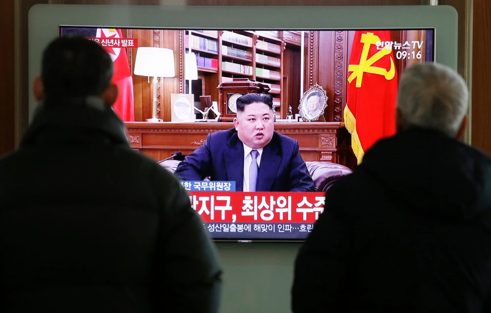 Bài phát biểu của ông Kim được phát trực tiếp trên truyền hình ngày 1-1. Ảnh: THE NEW YORK TIMES