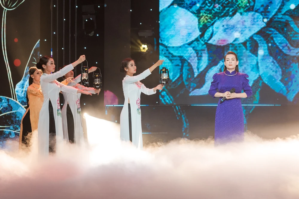 Trong bộ áo dài tím thướt tha, giọng ca da diết của Phi Nhung hòa quyện cùng lời nhạc tinh tế khiến người nghe cảm được tiếng lòng đang nức nở của cô. Ảnh: JET