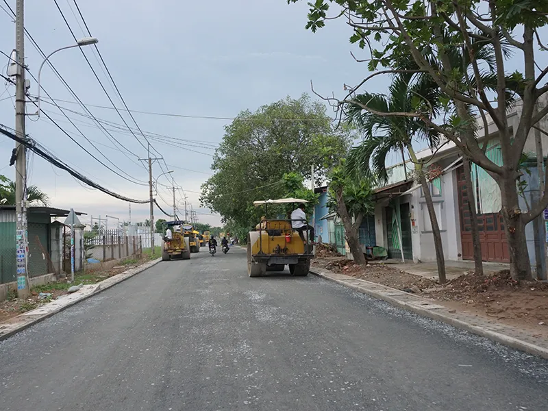 Đường Nữ Dân Công (huyện Bình Chánh) đã được nâng cấp, sửa chữa và đang dần hoàn thiện. Ảnh: THU TRINH