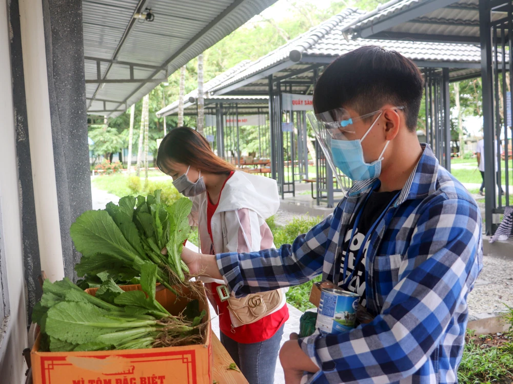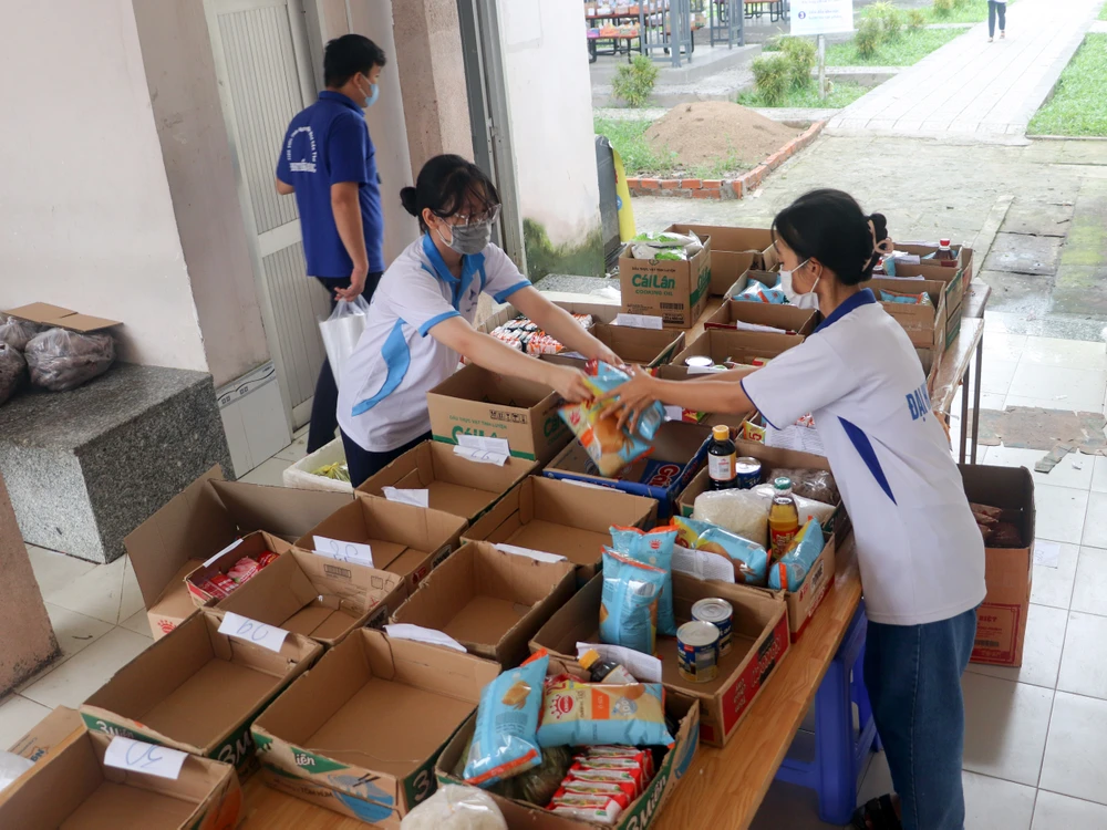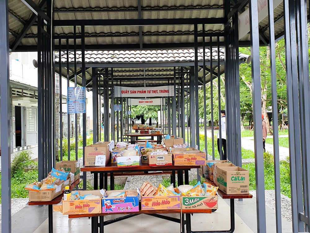 Phiên chợ được bắt đầu từ ngày 7-7, mỗi ngày hỗ trợ từ 300-500 suất nhu yếu phẩm cần thiết cho các sinh viên.
