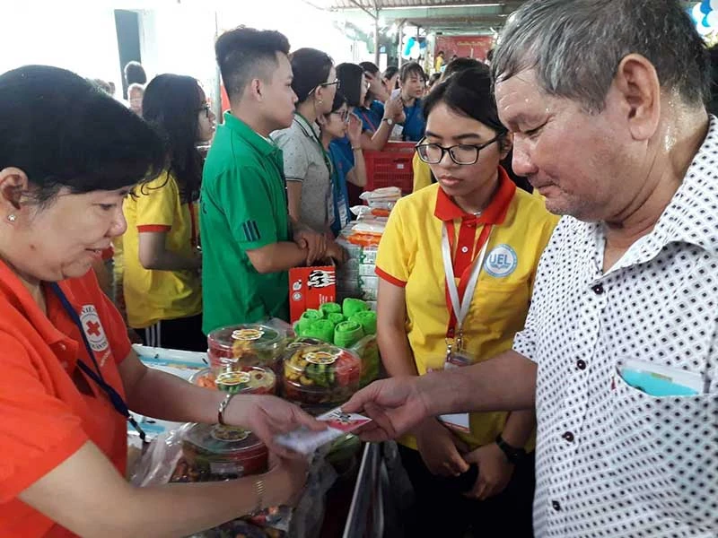 Hơn 500 bệnh nhân nghèo đang điều trị tại BV được ban tổ chức tặng mỗi người bảy phiếu và mỗi phiếu được mua một món hàng mà không phải trả tiền.