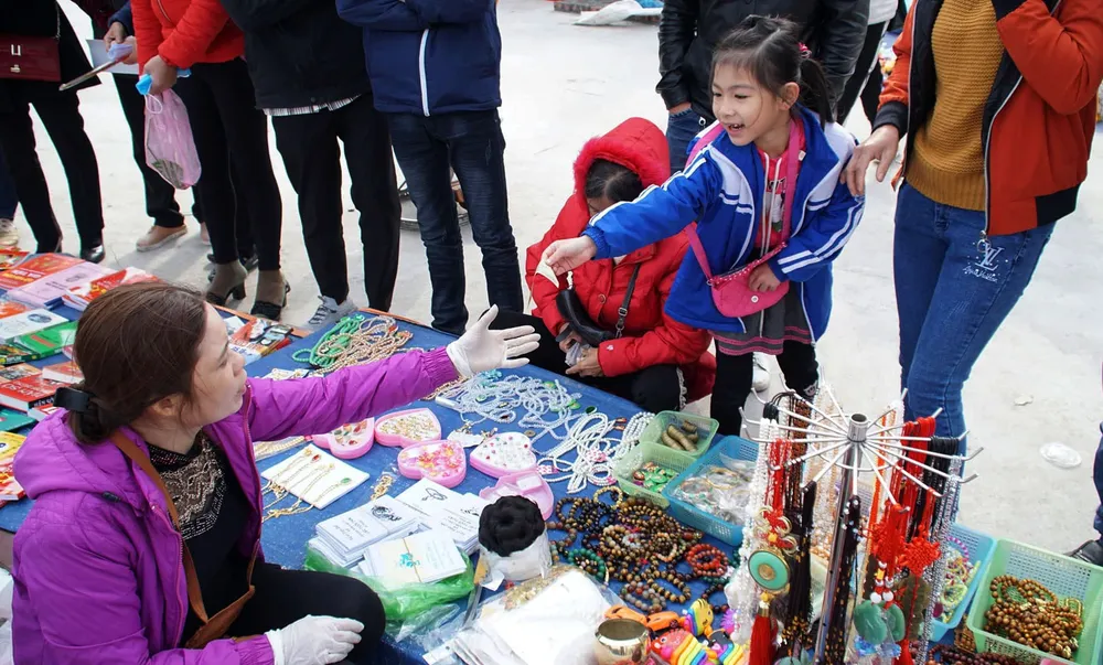 Phiên chợ cầu may đầu xuân thu hút khá đông người dân địa phương tham gia