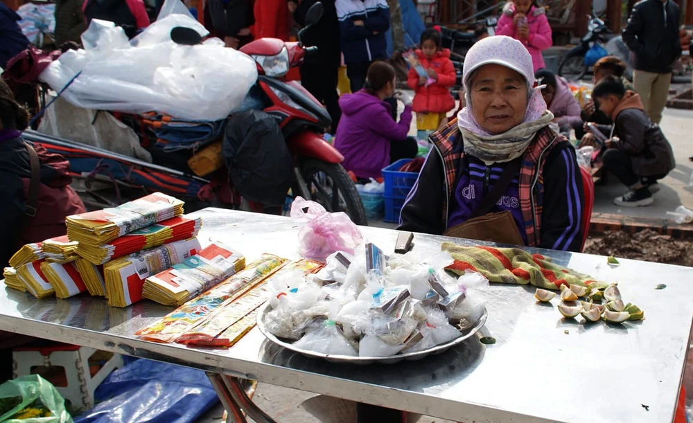 Đồ lễ, các túi gạo, diêm, muối cầu may đầu năm là những thứ được nhiều người mua nhất