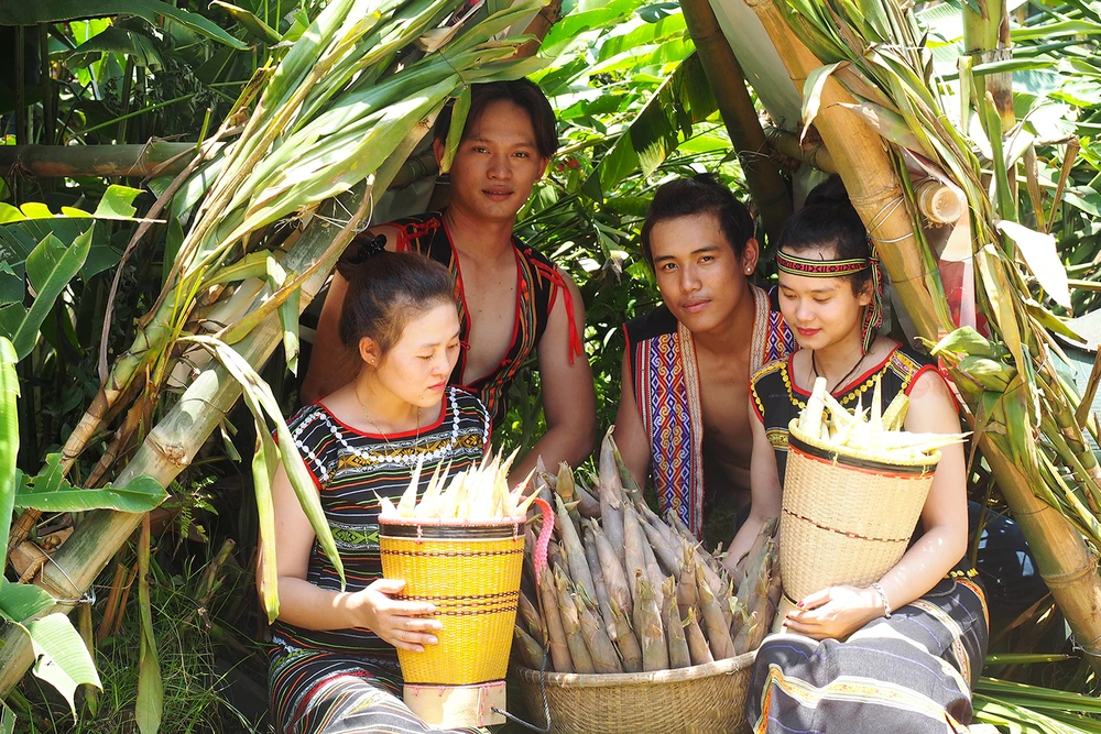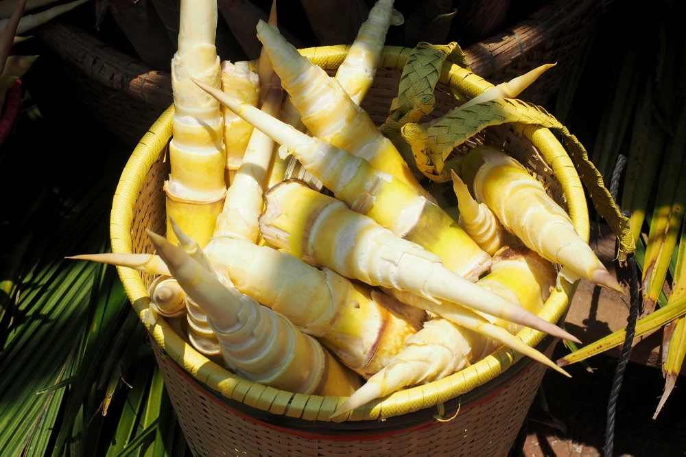 Măng được lấy về từ Lào để chuẩn bị chế biến món ăn. Ảnh: LỮ QUỲNH LOAN.