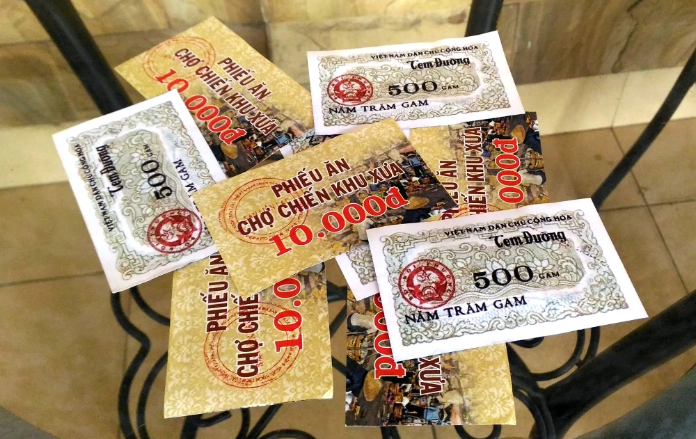 Phiếu dùng để mua đồ ăn tại phiên chợ. Ảnh: LỮ QUỲNH LOAN.