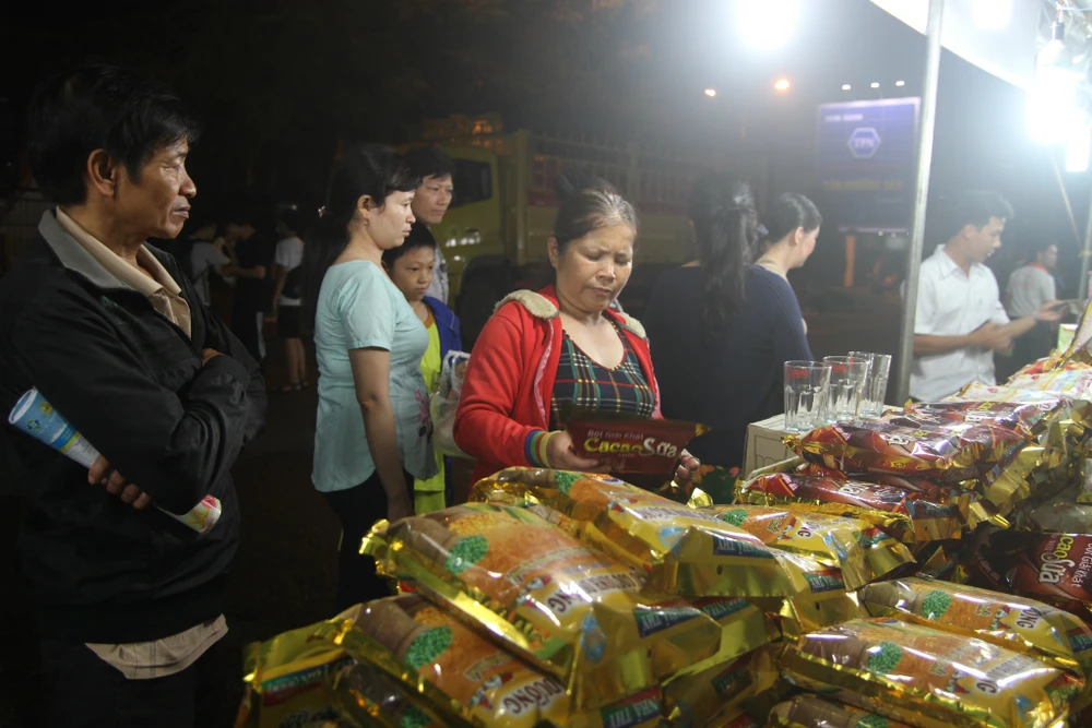 Khách hàng lựa chọn các sản phẩm ở phiên chợ.