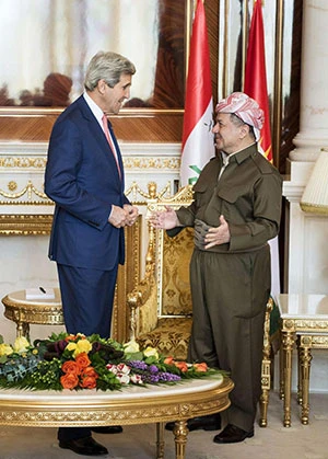 Cùng ngày, Ngoại trưởng Mỹ John Kerry đã đến Arbil (thủ phủ khu vực tự trị người Kurd ở miền Bắc Iraq) để thuyết phục các nhà lãnh đạo người Kurd tham gia thành lập chính phủ đoàn kết dân tộc nhằm lập một mặt trận chung chống phiến quân. Trao đổi với ông Masoud Barzani (ảnh) lãnh đạo người Kurd, Ngoại trưởng John Kerry nhấn mạnh: “Đây là thời khắc rất nguy kịch với Iraq và thành lập một chính phủ là thách thức chủ chốt của chúng ta”.