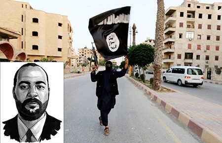 Chân dung Abu Bakr al-Baghdadi (ảnh nhỏ) và phiến quân ISIL ở Raqqa (Syria) ngày 29-6. Ảnh: TIME-REUTERS