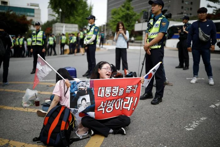 Một người biểu tình ủng hộ bà Park Geun-hye trước tòa án hôm nay. Ảnh: REUTERS.