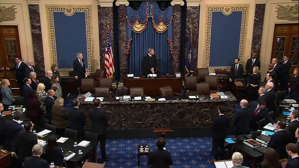 Sự kiện đánh dấu kết thúc cuộc chiến luận tội tổng thống Mỹ do Hạ viện (đảng Dân chủ chiếm đa số) chính thức khởi động cuối năm 2019 liên quan đến việc ông Trump gây áp lực buộc Ukraine điều tra đối thủ chính trị của mình là cựu Phó Tổng thống Joe Biden.