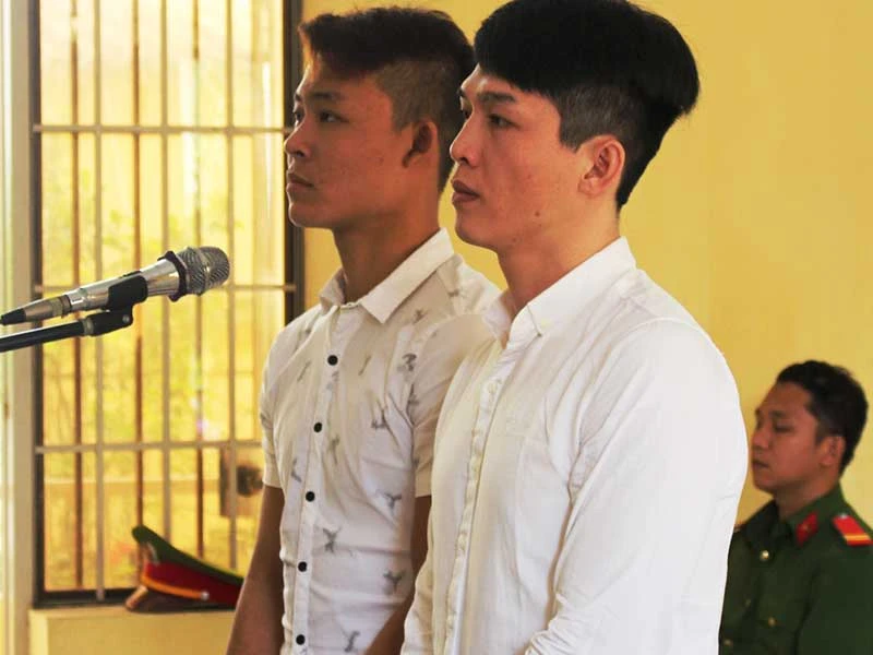 Bị cáo Lê Tấn Khỏe (trái) và Lê Minh Phát tại phiên tòa ngày 18-4. Ảnh: TẤN LỘC