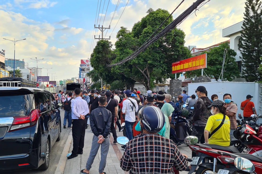 Hàng trăm người tập trung trước khu vực cổng tòa án. Ảnh: 1 YOUTUBE