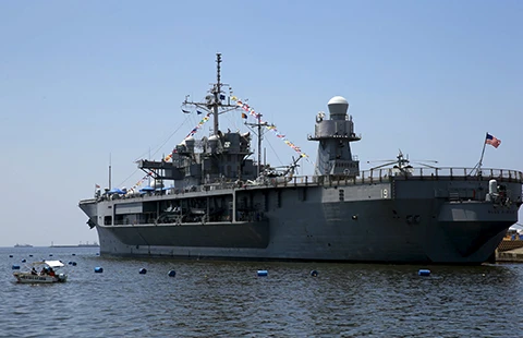 Soái hạm USS Blue Ridge thả neo ở Manila. Ảnh: HẢI QUÂN MỸ