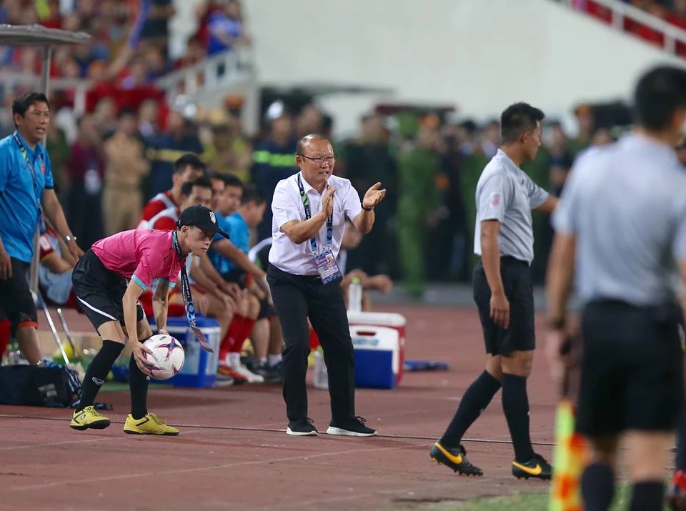 HLV Park Hang-seo bức xúc ngoài sân.