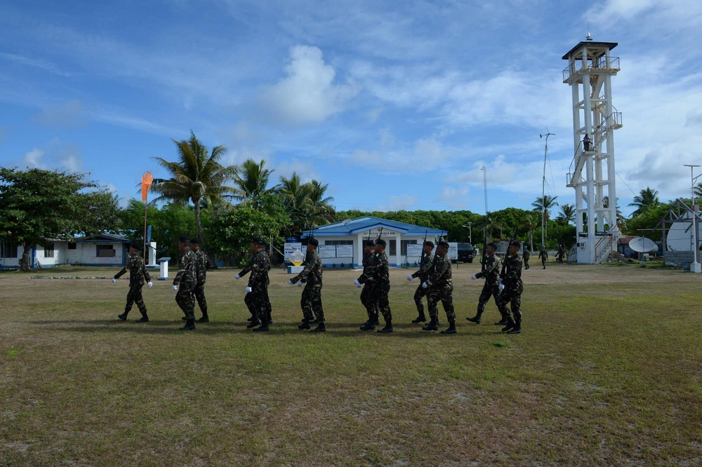 Lực lượng quân sự Philippines chiếm đóng trái phép trên đảo Thị Tứ. Ảnh: AFP