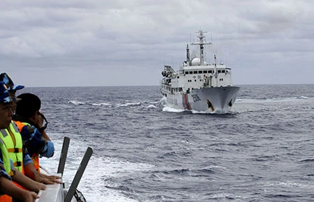Ngày 15-6, tàu Trung Quốc áp sát, ngăn cản, sẵn sàng đâm va, uy hiếp tàu Việt Nam. Ảnh: TTXVN