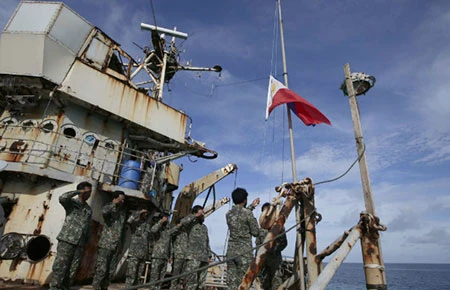 Tàu chính phủ Philippines tiếp tục làm nhiệm vụ tiếp tế sau khi bị tàu Trung Quốc cản đường. Ảnh: AP