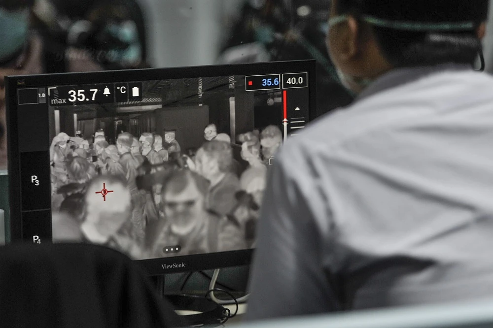 Malaysia tầm soát dịch COVID-19 ngay tại sân bay. Ảnh: FARHAN NAJIB