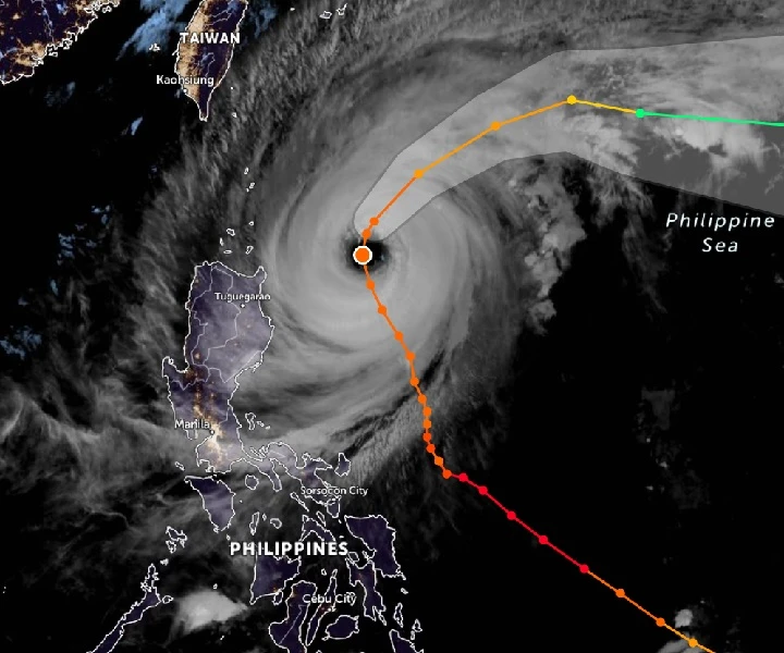 Sức gió vùng gần tâm bão đạt 150 km trên giờ, tương đương cấp 14. Tâm bão di chuyển theo hướng bắc, sau đó hướng dần sang hướng bắc-đông bắc, rồi đông-đông bắc và gần như không còn khả năng hướng trở lại đất liền Philippines.