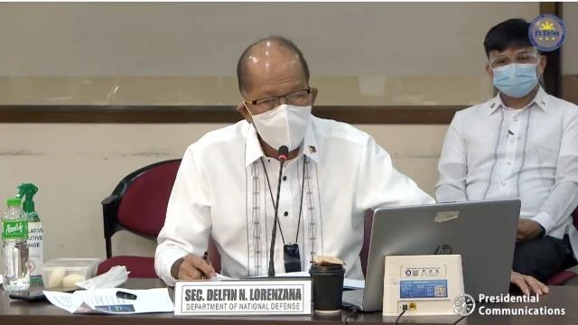 Bộ trưởng Quốc phòng Philippines Delfin Lorenzana tại phiên điều trần hôm 8-9. Ảnh: GMA NEWS