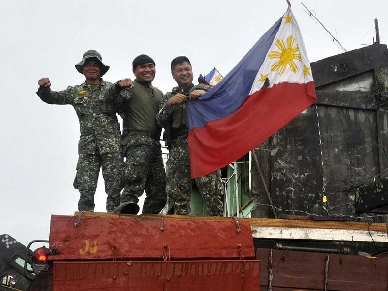 “Sau 154 ngày kể từ khi TP Marawi bị nhóm phiến quân Maute thân IS vây hãm và sau một tuần ngài tổng thống Philippines tuyên bố giải phóng thành phố, chúng tôi thông báo chấm dứt tất cả hoạt động chiến đấu tại Marawi” - ông Lorenzana tuyên bố. Chính phủ Philippines cho biết sáu tiểu đoàn quân chính phủ vẫn ở lại Marawi để theo dõi tình hình.