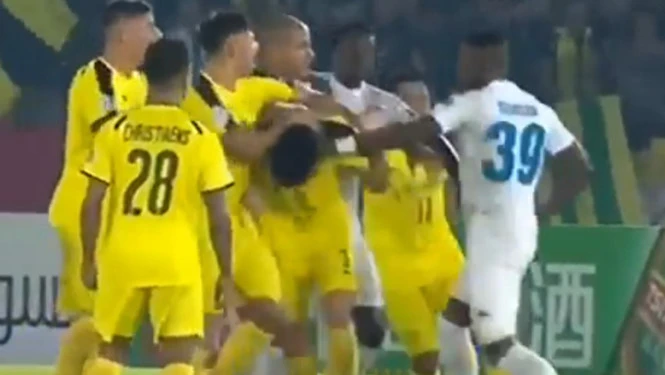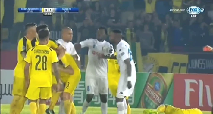 Hoàng Vũ Samson trả đũa khi bị các cầu thủ Ceres Negros khiêu khích.