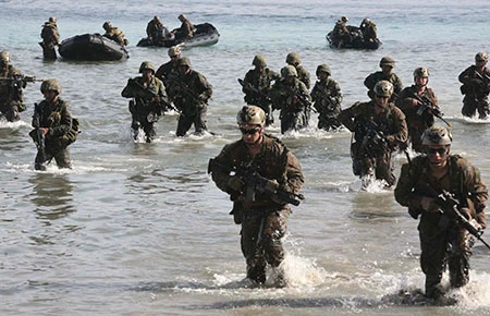 Các binh sĩ hải quân Philippines và Mỹ tham gia cuộc tập trận thường niên Phiblex ở tỉnh Zambales (Philippines) trong 12 ngày từ ngày 29-9. Ảnh: HẢI QUÂN MỸ